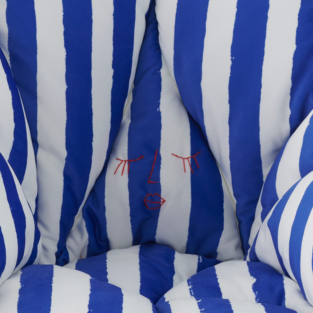 花びらが身体を包み込むようなフォルムは、座る人を優しく受け止めます。