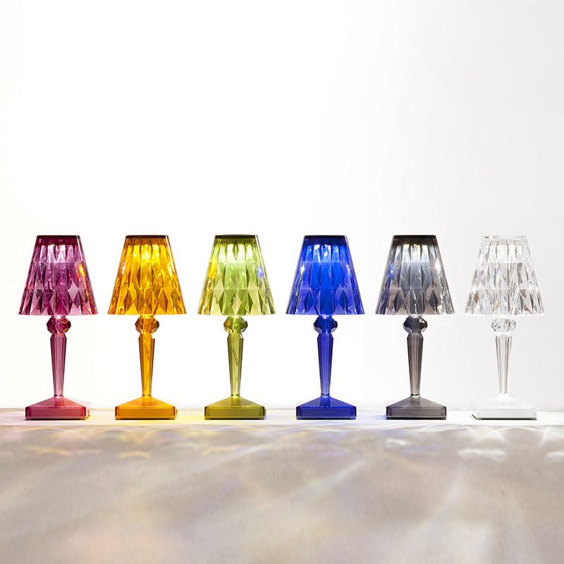 典型的なランプシェードのかたちを元に、コンテンポラリーな技術を組み合わせた照明です。5時間の満充電で6時間点灯します。
