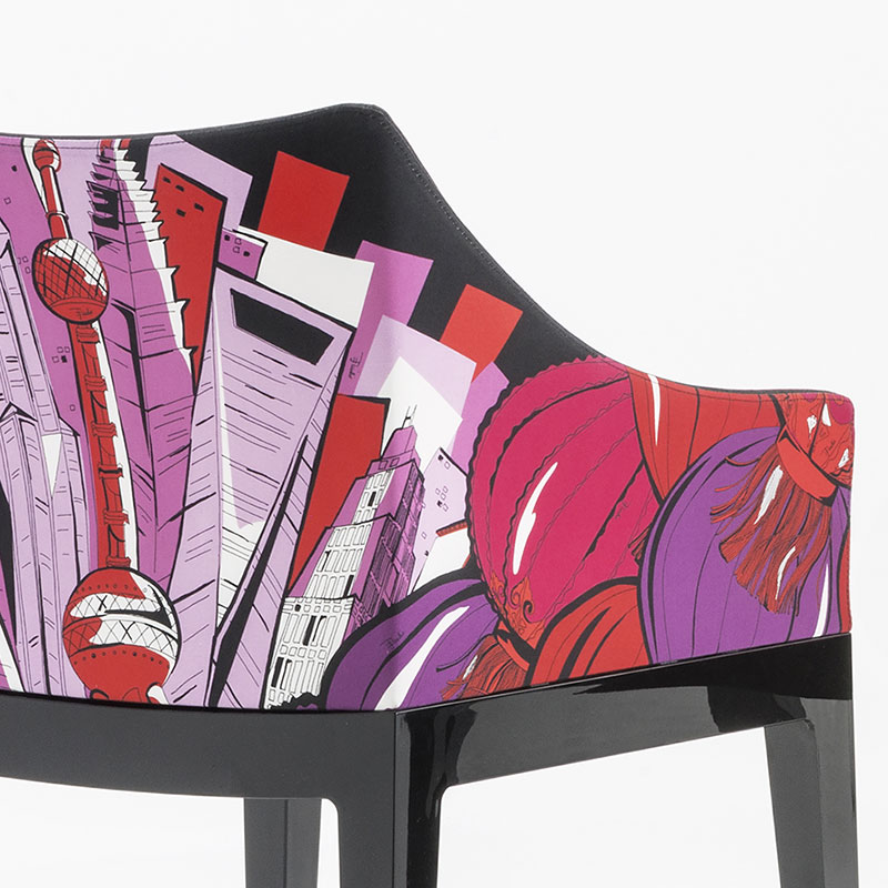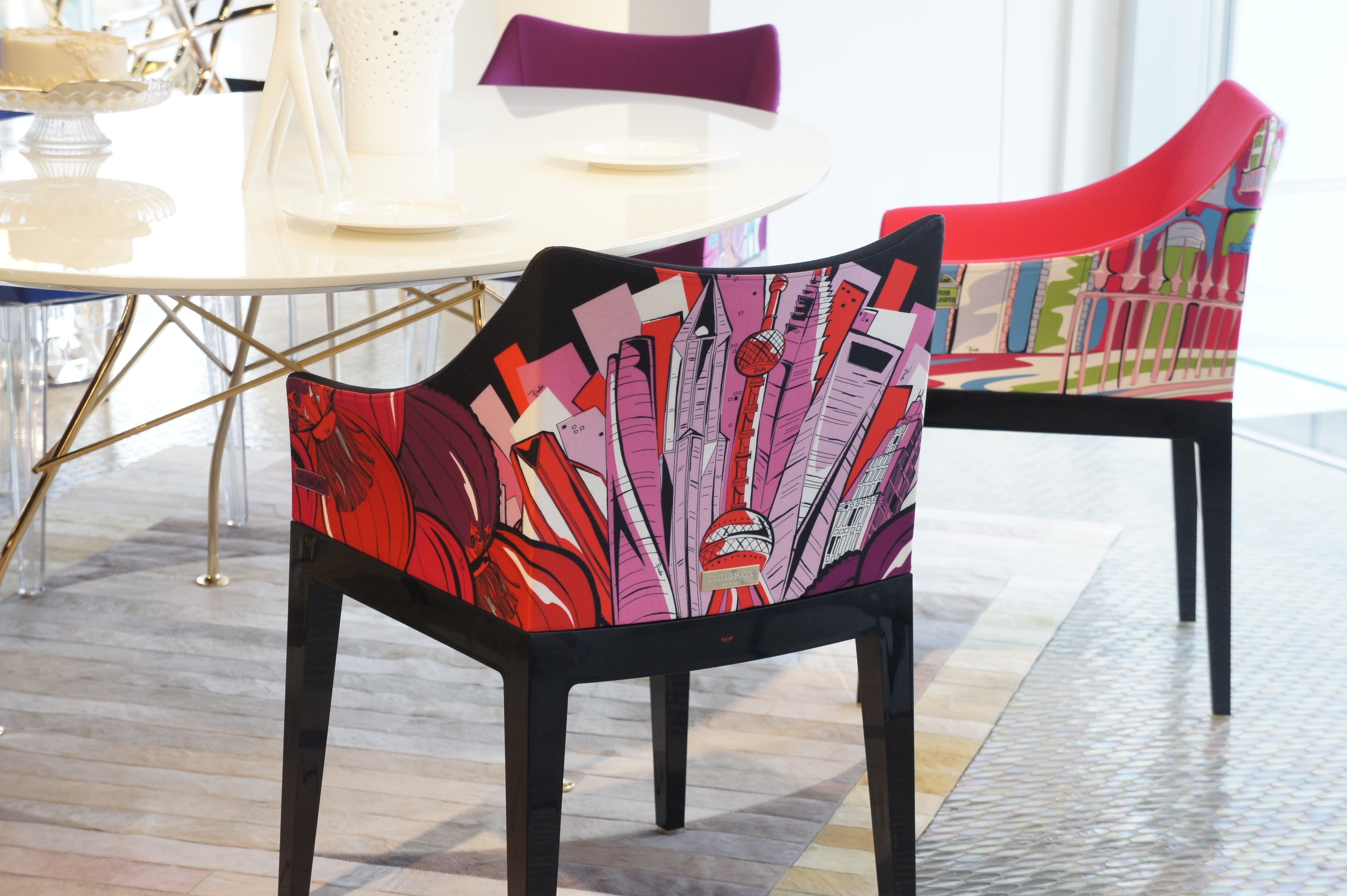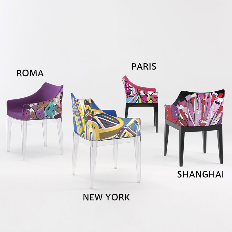 2015年4月のミラノサローネを舞台に立ち上げられたコラボプロジェクト「MADAME − WORLD OF EMILIO PUCCI EDITION」にて、カルテルとエミリオ・プッチは今までにないものを目指し手を組みました。フィリップ・スタルクのデザインによる「マダムチェア」と、世界の都市を描いたエミリオ・プッチのスカーフコレクション「Cities of the world」が見事なコラボレーションを果たしました。