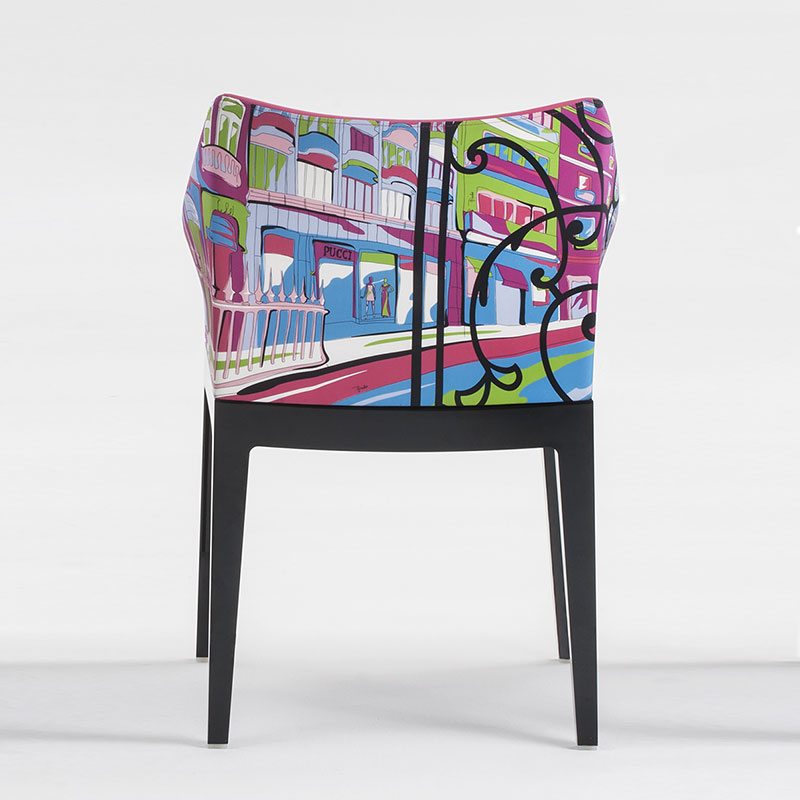 2015年4月のミラノサローネを舞台に立ち上げられたコラボプロジェクト「MADAME − WORLD OF EMILIO PUCCI EDITION」にて、カルテルとエミリオ・プッチは今までにないものを目指し手を組みました。フィリップ・スタルクのデザインによる「マダムチェア」と、世界の都市を描いたエミリオ・プッチのスカーフコレクション「Cities of the world」が見事なコラボレーションを果たしました。
