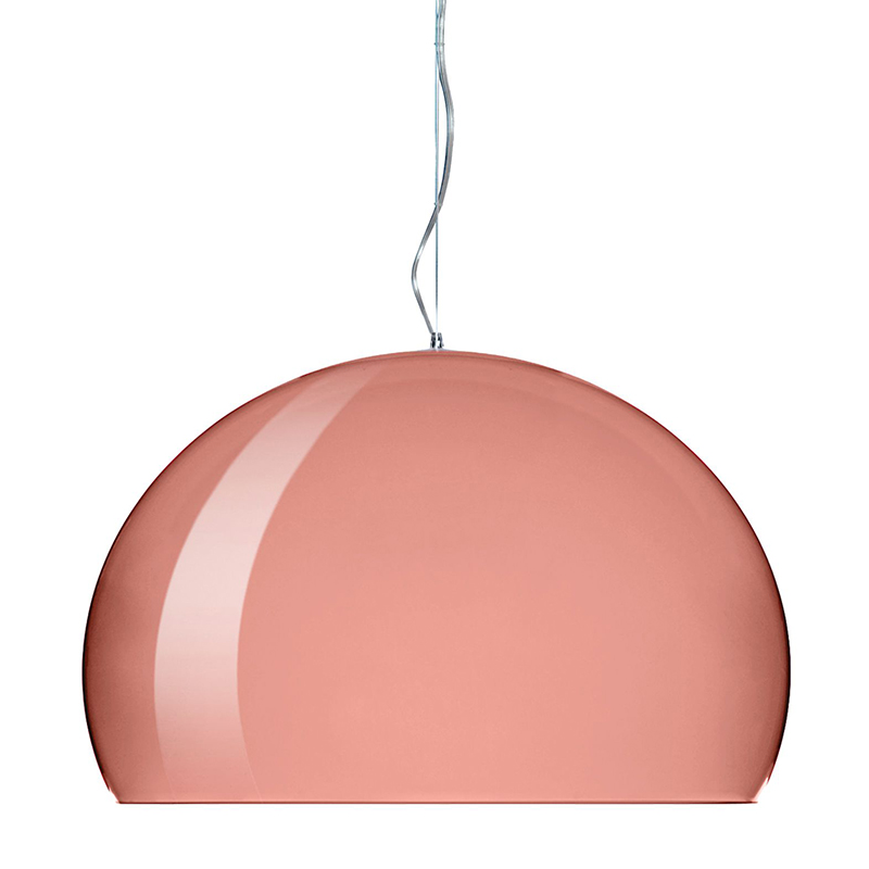 シンプルですが、ちょっとしたデザインの工夫でひときわ美しいランプです。アクリル樹脂のシェードは、半球をわずかに長くした形で光を包み込みます。素材が放つ光彩は、輝くシャボン玉を思わせます。多色を組み合わせて吊ると、いっそう楽しい雰囲気が演出できます。フェルーチョ・ラヴィアーニ、デザイン。