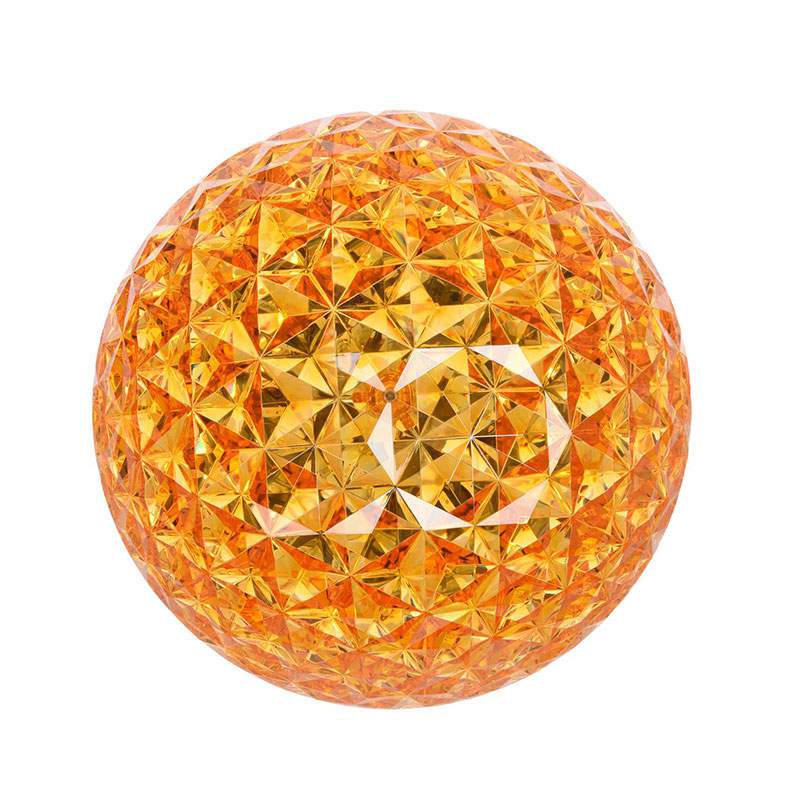 光の屈折を緻密に計算したシェードの加工とカルテルが独自に開発した内蔵のLED照明によりクリスタルガラスの輝きをプラスティックで実現しています。