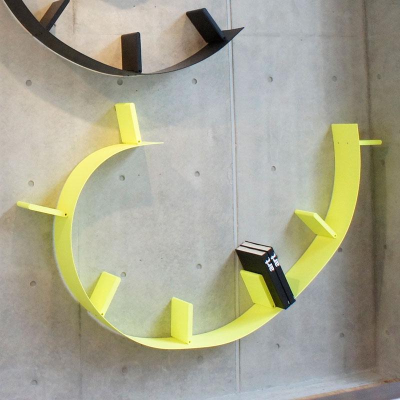 長さは3種類あり、それぞれブックエンド付き。壁面にどんな形にも自由自在に取り付けることができます。各ポイントで約10kgの荷重まで支えることができます。