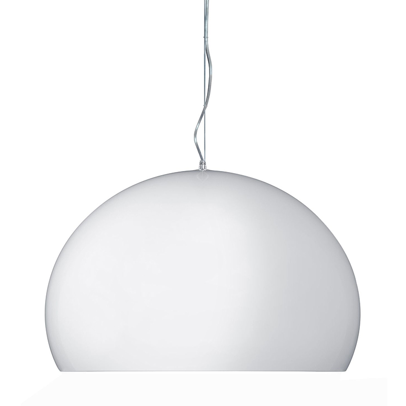 シンプルですが、ちょっとしたデザインの工夫でひときわ美しいランプです。アクリル樹脂のシェードは、半球をわずかに長くした形で光を包み込みます。素材が放つ光彩は、輝くシャボン玉を思わせます。多色を組み合わせて吊ると、いっそう楽しい雰囲気が演出できます。フェルーチョ・ラヴィアーニ、デザイン。