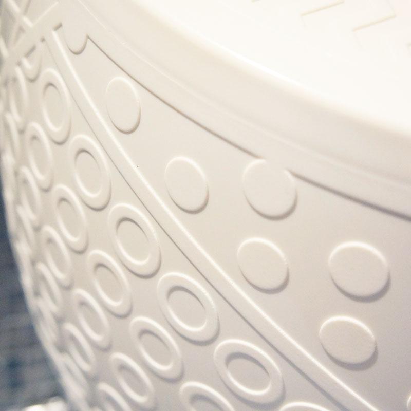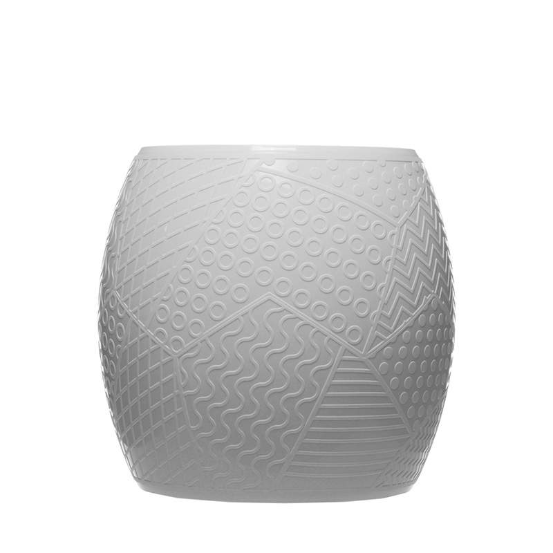 古くからある典型的な樽型のチャイニーズスツールの形に、ロイ・リキテンシュタインを連想させるアメリカンポップアートのグラフィックパターン、最も異なる要素をひとつにしたミックススタイルです。