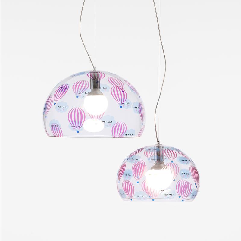 カルテルの人気の照明「フライ」にキッズバージョンが新登場。シェードに星やバルーン、恐竜など遊び心に満ちた楽しいカラーとグラフィックが描かれています。 大きさは2種類ございますので、大きさ違いで吊るすのもオススメです。 フェルーチョ・ラヴィアーニ、デザイン。