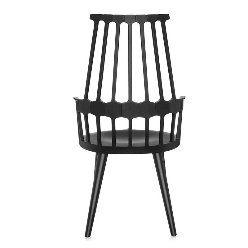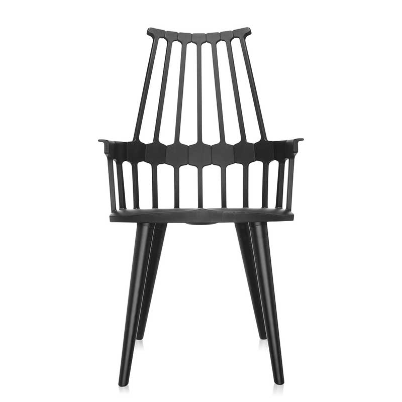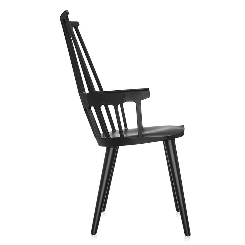ウィンザーチェアとして知られる英国クラシックスタイルのデザインが、先端の樹脂成型技術を使ったニュールックの椅子として現代にカムバック。櫛状の背部(COMB BACK)の支柱と繋がる、六角形の補強リムが腰にフィットし、人間工学的にもおさまりのよいサイズ感の椅子に生まれ変わりました。