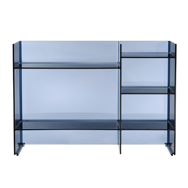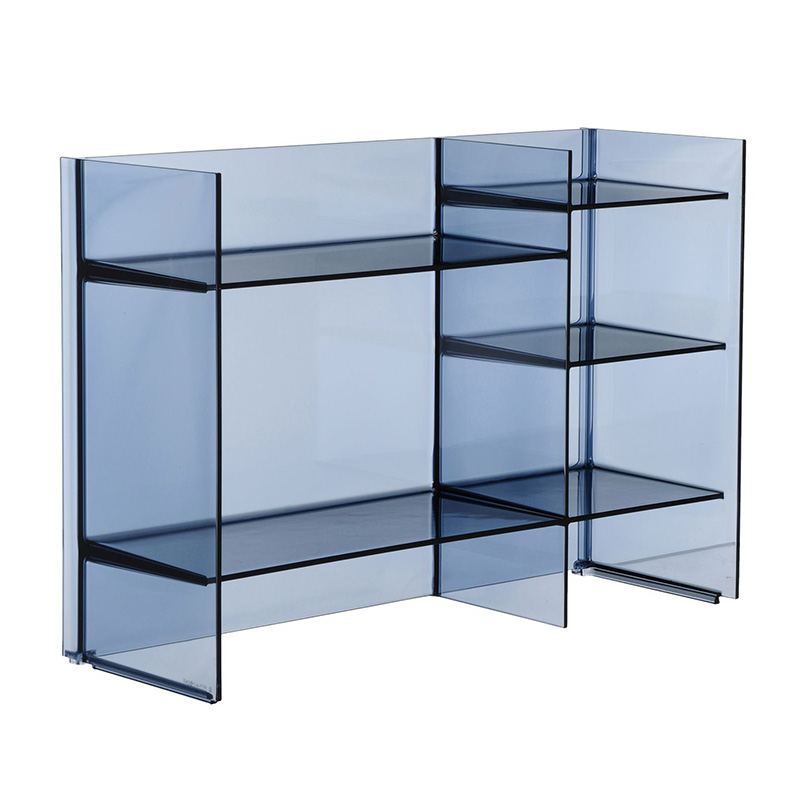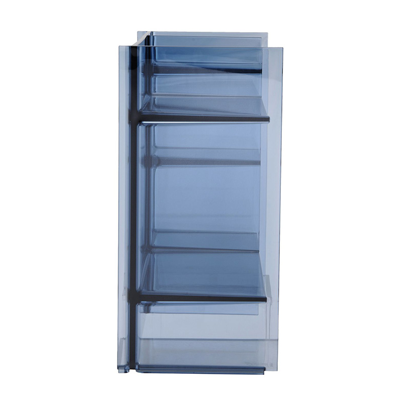 このシンプルなキャビネットは、バスルームのコーナーや壁面スペースなど、どんな場所にもフィットする使い易さをもっています。横に並べたり、積み重ねてみたり、ラックとしての実用性はもちろん、透過性があるので、空間の間仕切りとしても圧迫感を感じさせません。