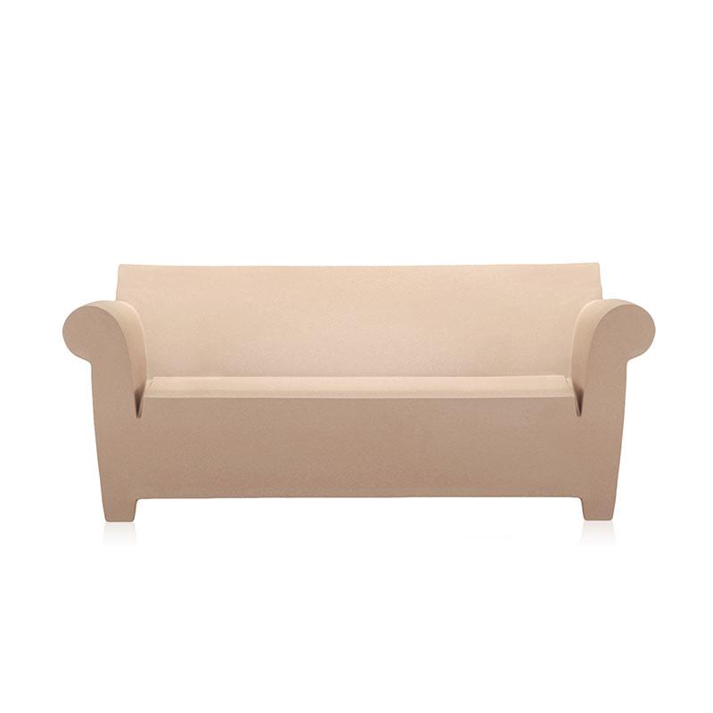 優しいラインの肘掛けと直線的な背もたれのコントラストが美しく、「おばあちゃんのソファ」のようなレトロな雰囲気の漂うゆったりサイズの二人掛けソファです。同色仕上げのアームチェアとテーブルも取り揃えています。耐候性に優れた素材が使用されているため、ガーデン、プールサイド、テラス用家具として最適です。