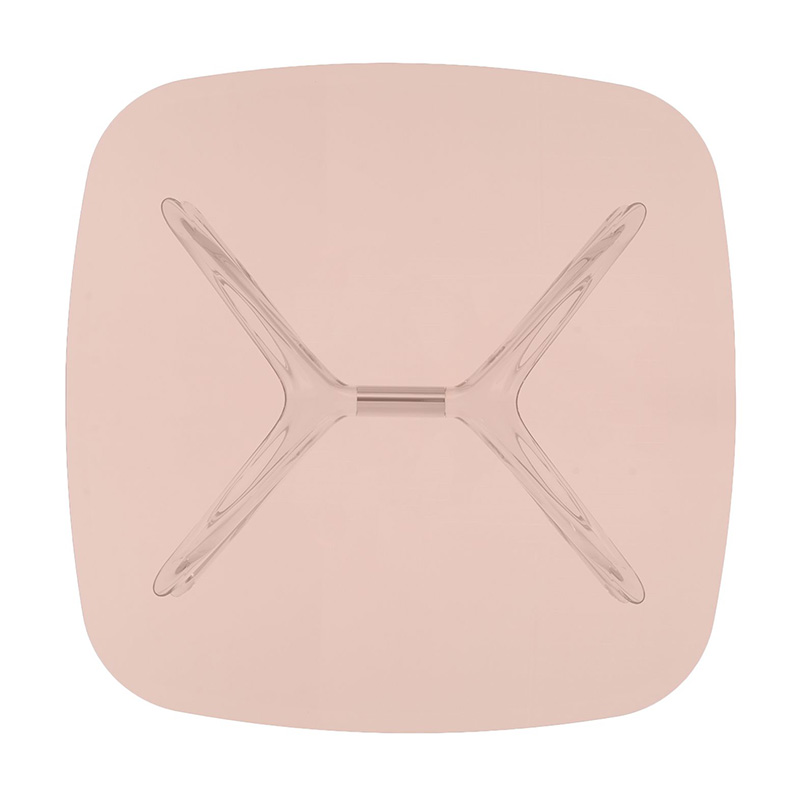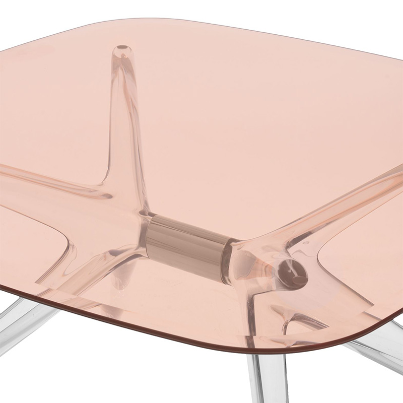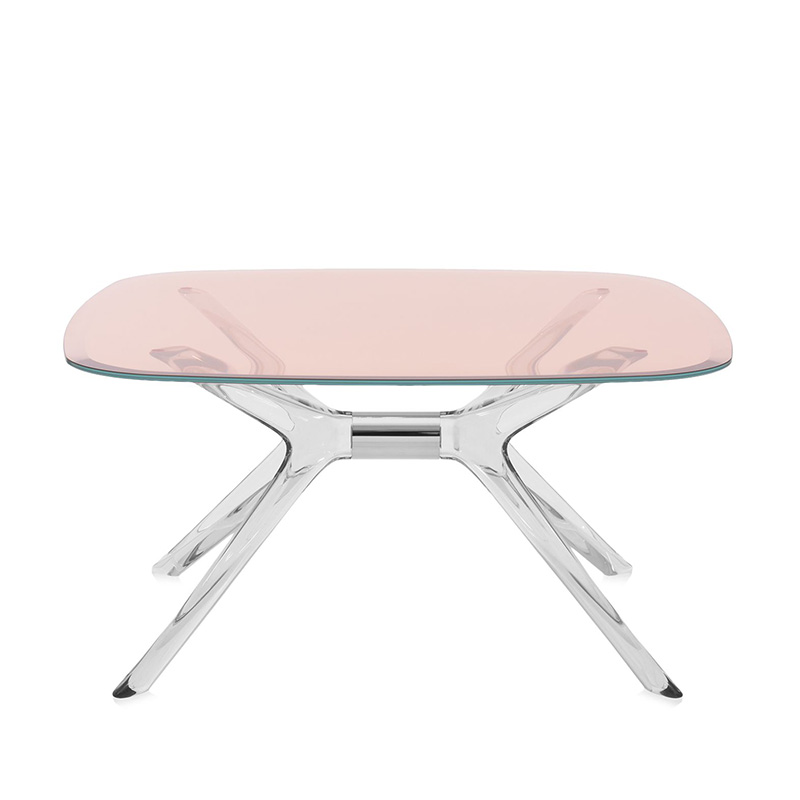 透明なガラストップとポリカーボネートの脚が組み合せらせたローテーブル。トップにはカラーバリエーションがあり、美しい透明なカラーレイヤーを楽しむこともできます。