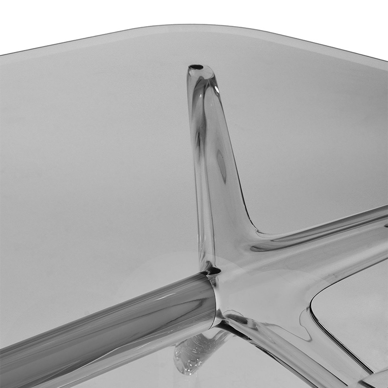 透明なガラストップとポリカーボネートの脚が組み合せらせたローテーブル。トップにはカラーバリエーションがあり、美しい透明なカラーレイヤーを楽しむこともできます。
