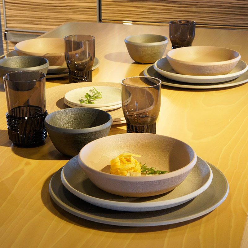 見た目と素材の強度が真逆な、この暗喩めいた食器で誰を驚かそうか、何を盛りつけようかとニヤリとしちゃいます。