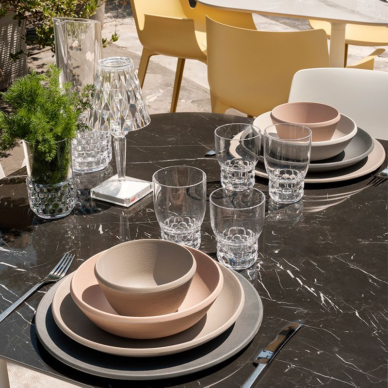 トラマは日本の陶器からインスパイアを受けてデザインされたテーブルウェアです。表面は細かいシボを再現しラフに仕上げられ、手にしたときのやさしい手触りが特徴です。