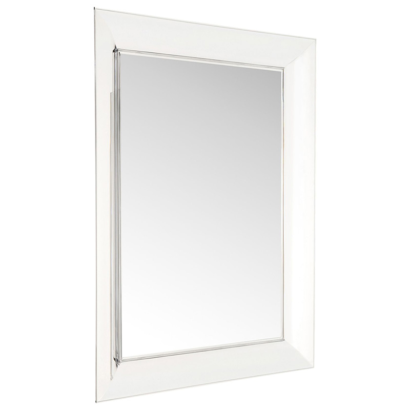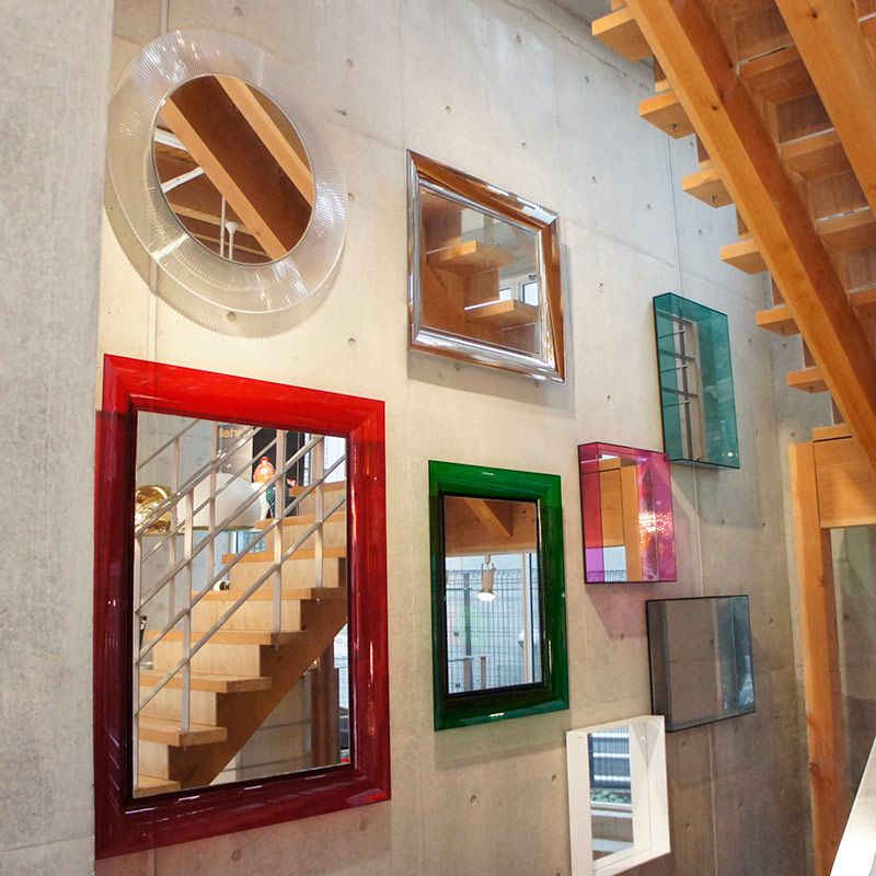 磨かれたクリスタルを連想させる壁掛けタイプのミラー。フレームの断面はカモメの翼のような丸みを帯びており、 縦横いずれにも掛けることができます。フレーム色はベネチア・ムラーノガラスの色彩に似たリッチで趣のある透明色を採用。