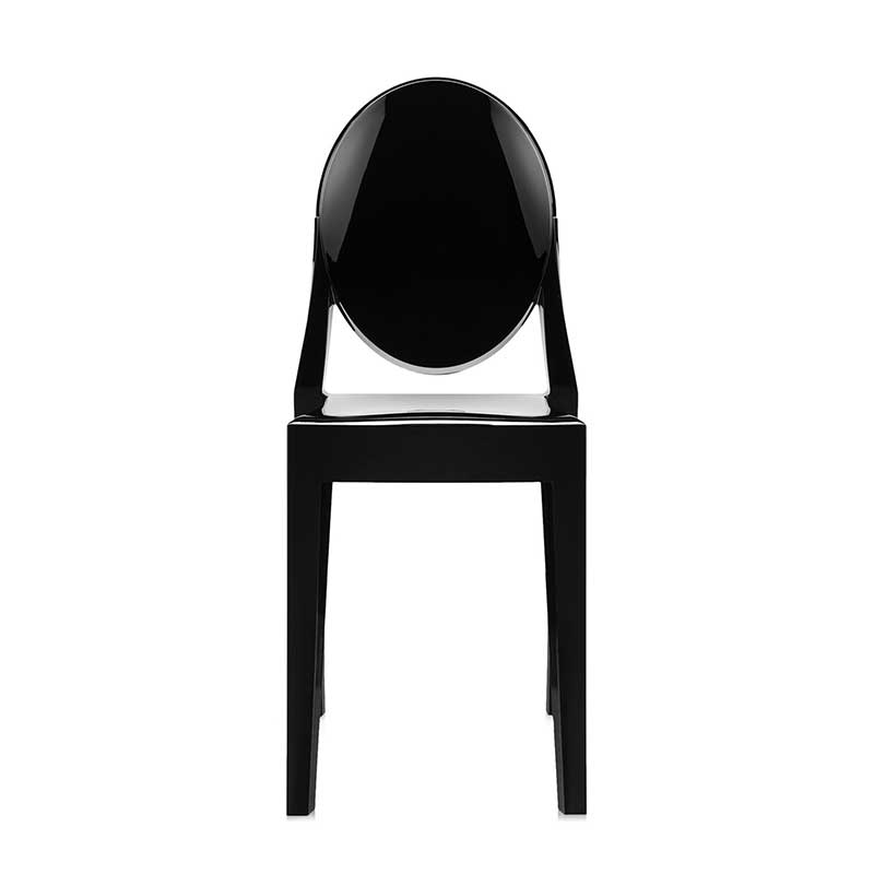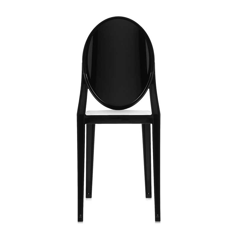背もたれはメダルを思わせる丸みを帯びたデザイン。座面は幾何学的なラインで表現されています。一体型射出成形で作られたポリカーボネートで、カラーは透明色、オパック色があります。