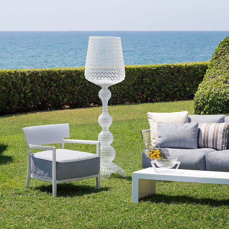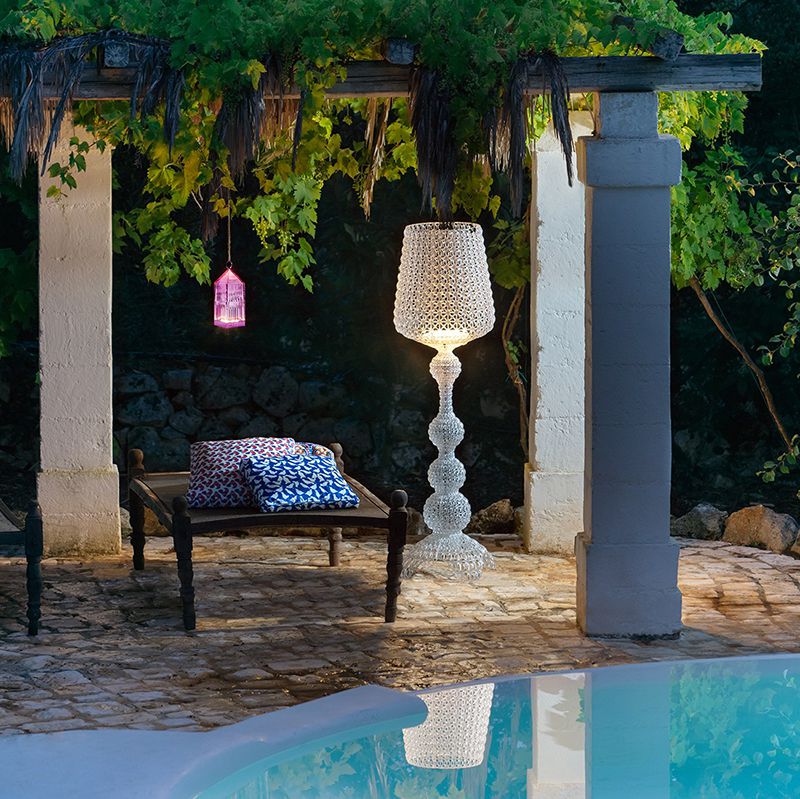 こちらのタイプはアウトドア向けなので、屋内外で使用できます。 LED光源(調光可能)。デザインはフェルーチョ・ラヴィアーニ。