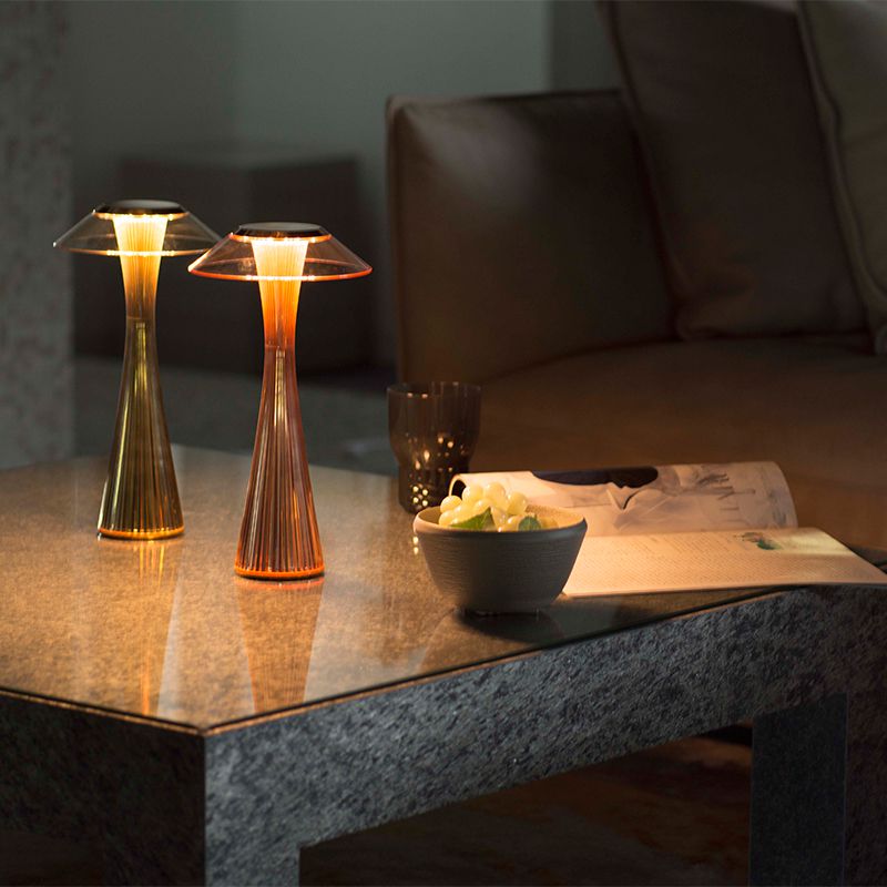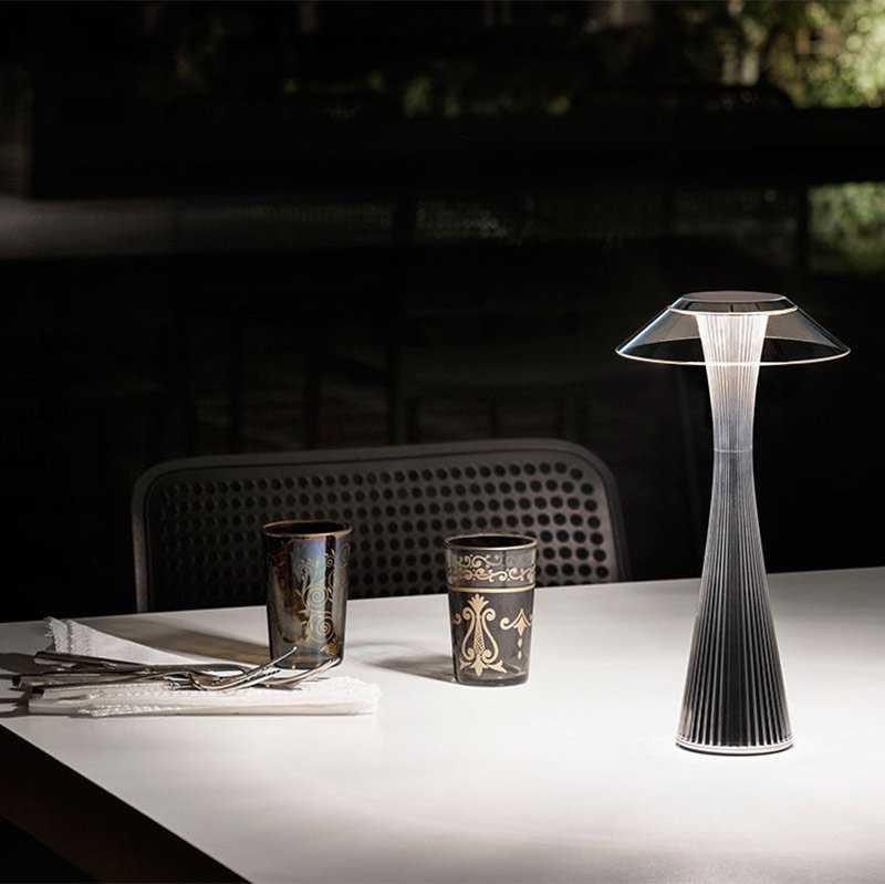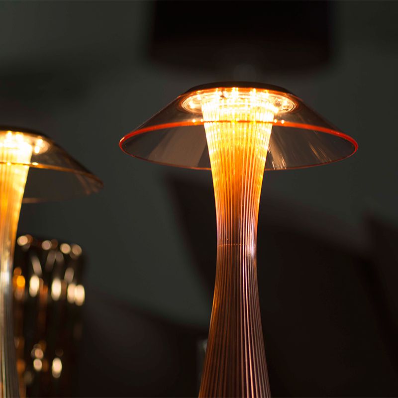 透明プラスティックを使った細長いLEDテーブルランプ。