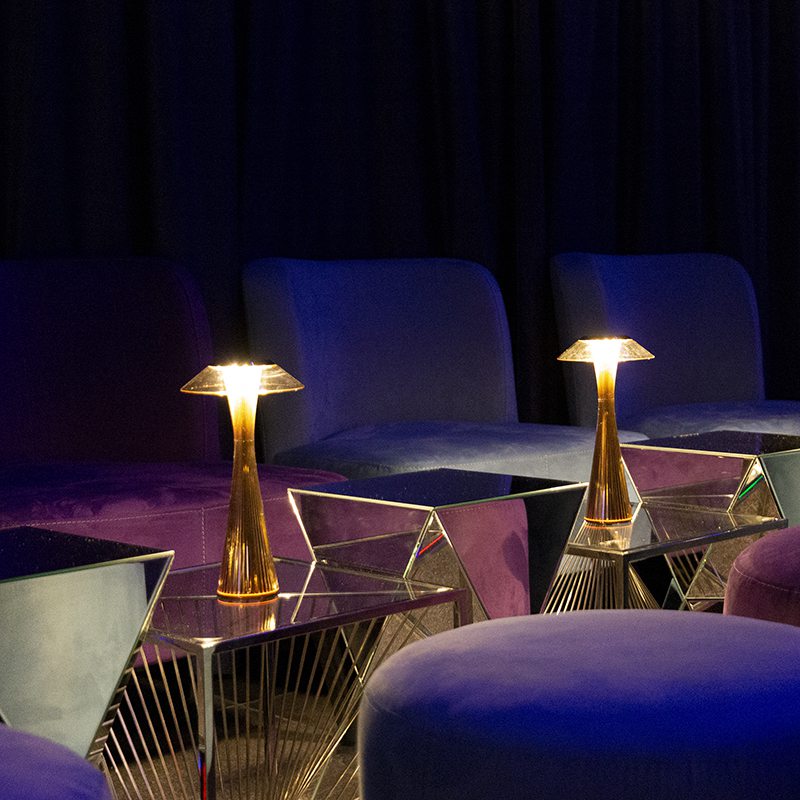 充電式なので電源の無い場所へ持ち運ぶことができます。オープンエアなテラスや、カフェスペースなどにもピッタリです。