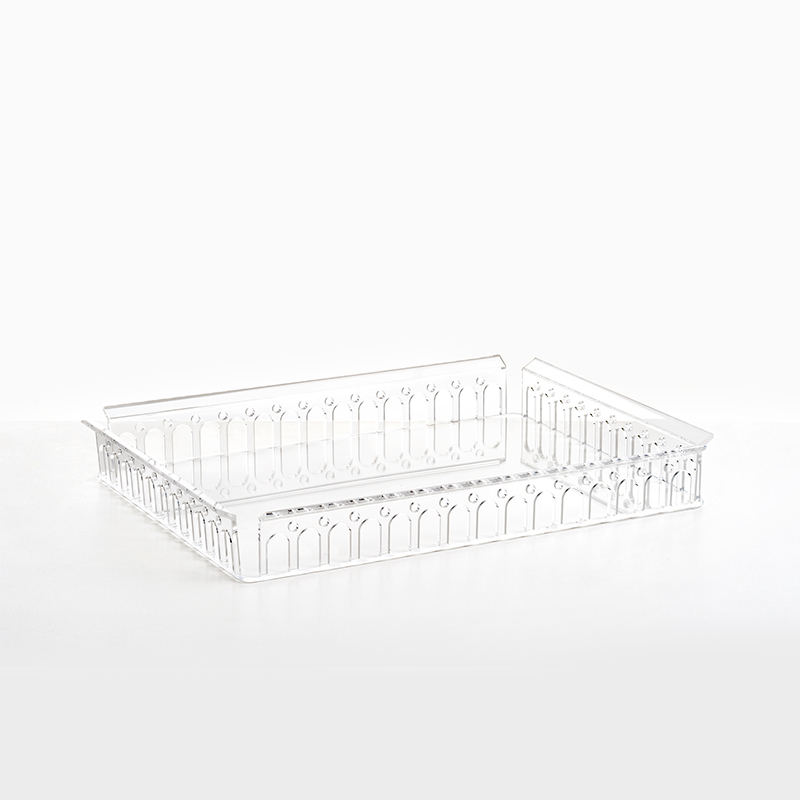 スツールの「エウル」、収納ポットの「トゥルッロ」、そしてこのトレイ「ピアッツァ」。イタリアらしい特徴的な建築をデザインに活かしたシリーズは、カルテルの中でも人気のシリーズです。