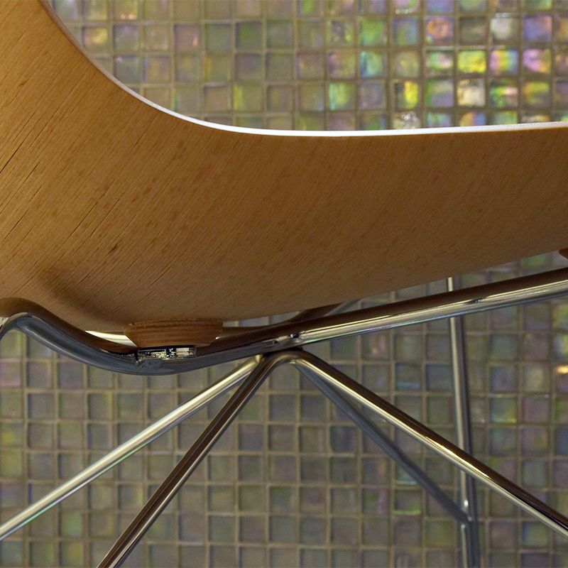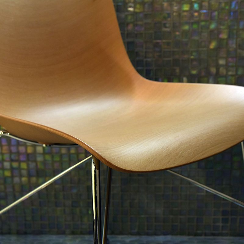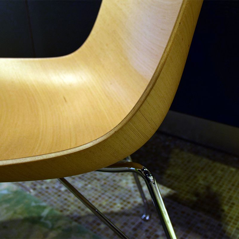 特殊な素材と特殊な技術によって、従来のプライウッド製の椅子では実現できなかった、複雑で繊細な立体的なカーブを再現しています。