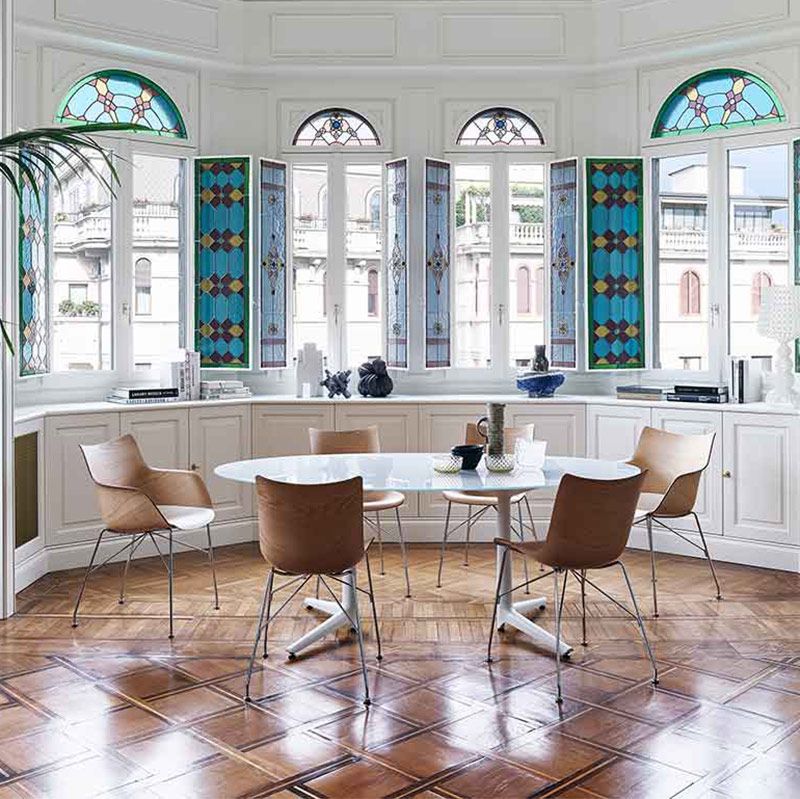 3次元成型合板の成型は世界でも限られた企業でしか実現できていない最先端の技術です。Kartell=プラスティックではなく、Kartell=研究と革新の精神のもとに、プラスティック素材に固執すること無く、絶え間ない研究と革新の技術を追求します。