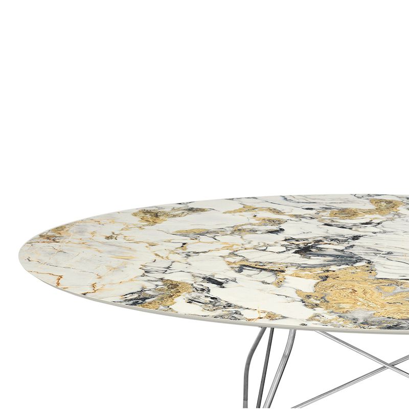 大理石柄の天板を支える華奢な脚。