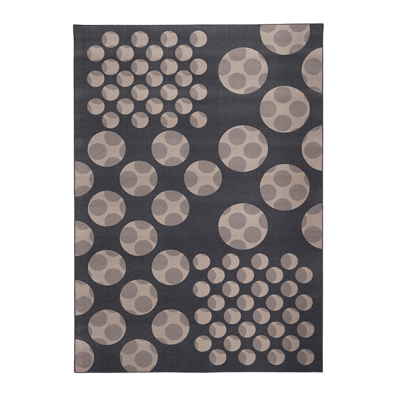 シンプルでありながらも、丸のパターンの大きさをリズミカルに変えて組み合わせることで、まるでカーペットが2枚重なっているように立体的に見せています。