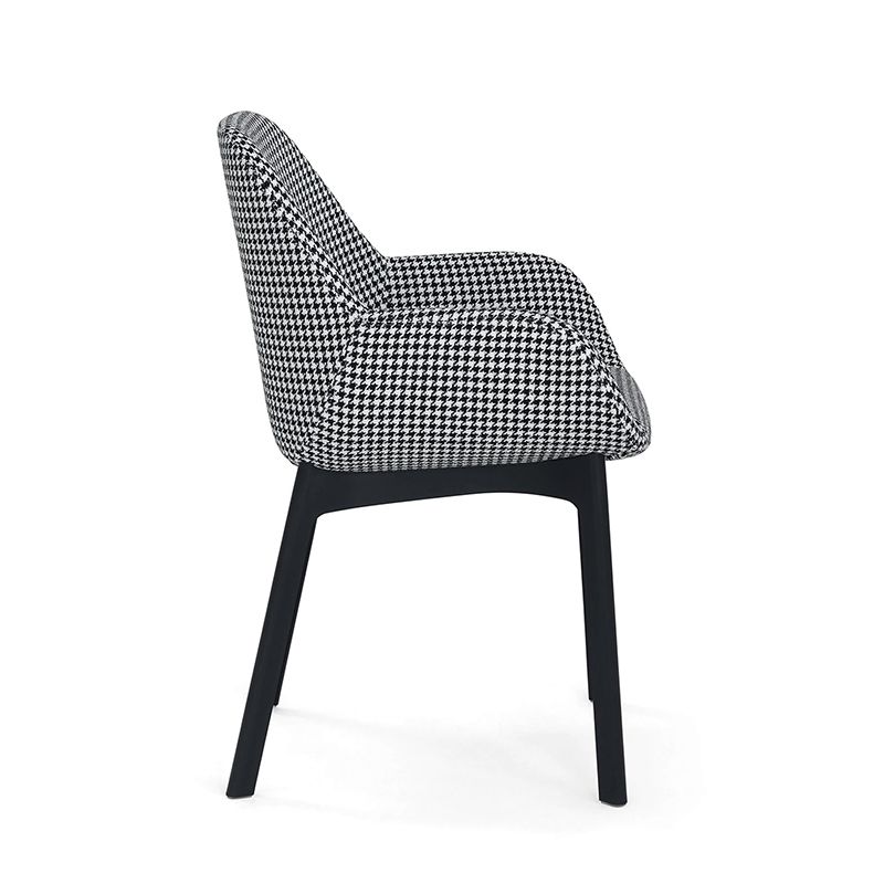 パトリシア・ウルキオラデザインのチェア。ハニカム柄のエレガントで機能的なファブリック張りの座面と耐久力に優れたプラスチックのフレームが特徴的です。さまざまなインテリアスタイルにマッチします。