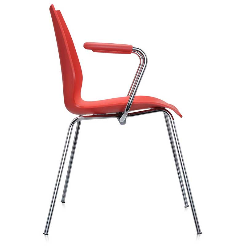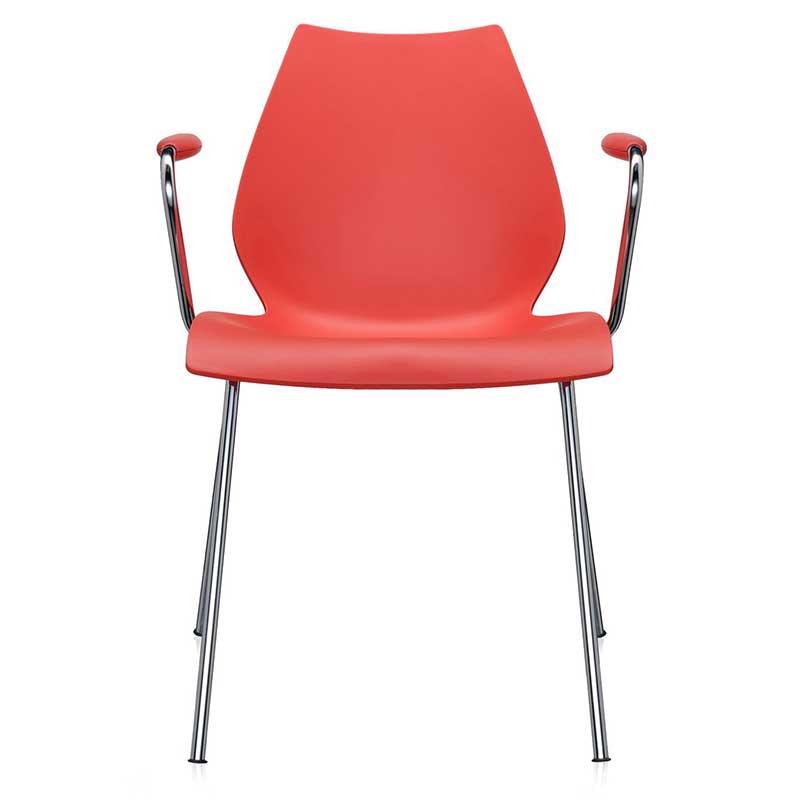 ハワイのマウイ島火山をイメージしてデザインされたチェアです。シートと背もたれが一体となったボディは強度と耐久性に優れているポリプロピレンが使用されており、クロームメッキ仕上げのスチール製フレームに固定されています。エレガントなシルエットでダイニングルームや書斎などのホームシーンから、オフィスやレストランなどコントラクトシーンにもぴったりです。コンパクト設計により5脚までスタッキング可能です。