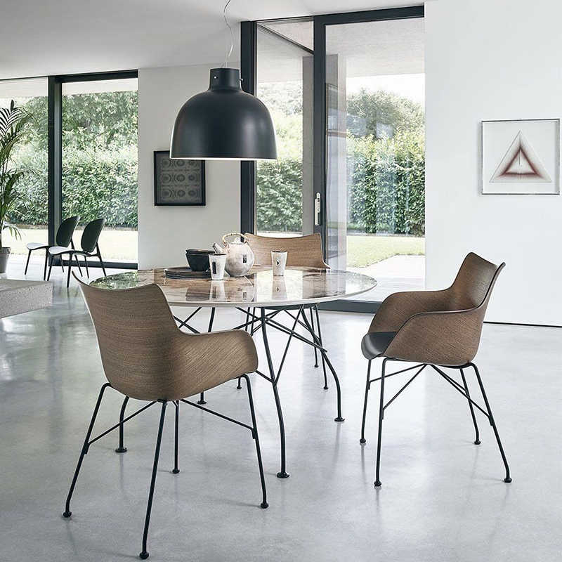 3次元成型合板の成型は世界でも限られた企業でしか実現できていない最先端の技術です。Kartell=プラスティックではなく、Kartell=研究と革新の精神のもとに、プラスティック素材に固執すること無く、絶え間ない研究と革新の技術を追求します。