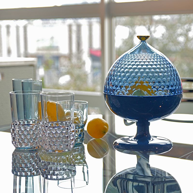 カラーはブラック、ホワイト、ブルー、ブリックレッドの4色。蓋の部分は各カラーに合わせた透過カラーで、凹凸がレンズ効果で立体的な装飾に見えます。
