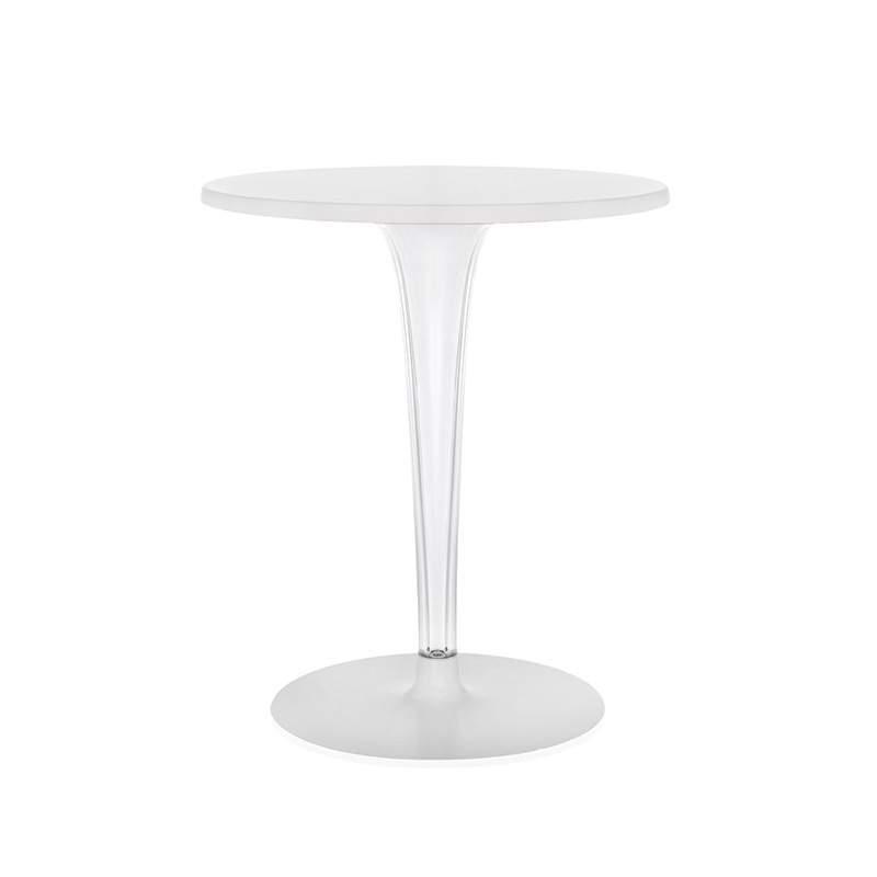 トップトップのダイニングテーブルは、グロッシーな面と透明な面を組み合わせたオリジナリティ溢れるテーブル。ミニマルでエレガントなラインを、プリーツのような筋の入った透明の脚が一層引き立てます。脚の断面は四角でメタル製の芯入りです。サイズと素材のバラエティがあり、様々な用途に対応します。