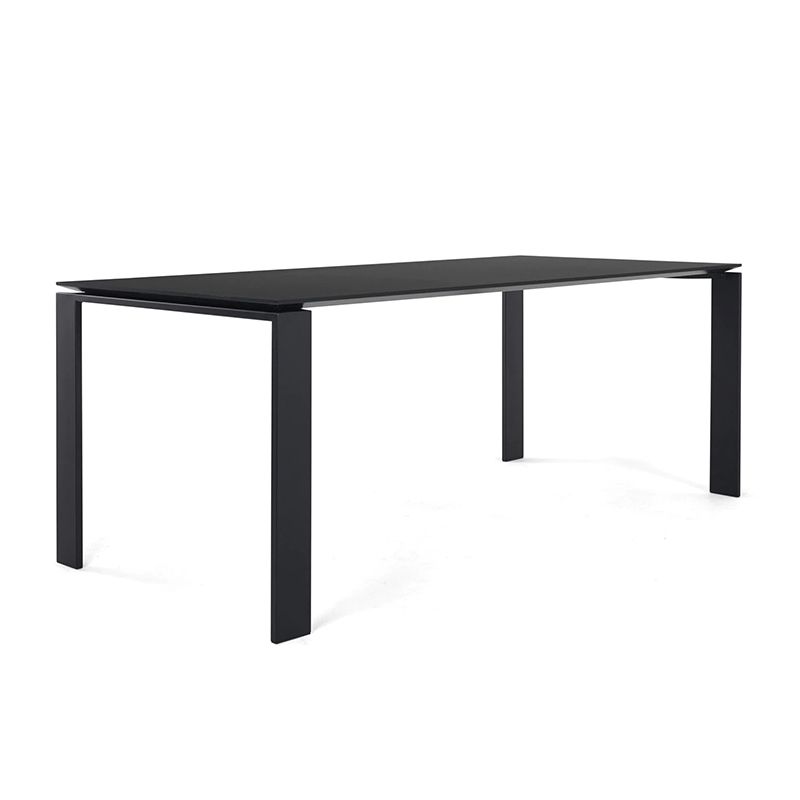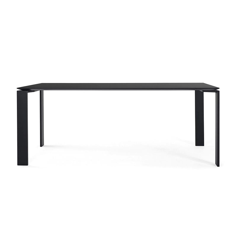 機能的で洗練されたシンプルなデザインです。薄い天板の下にチェストやパソコン用ファニチャーが入れられるよう工夫されています。Fourを複数配置してワークステーションをつくることもできます。天板は厚さ2.5cmの多層合板、脚はスチールの塗装仕上げです。