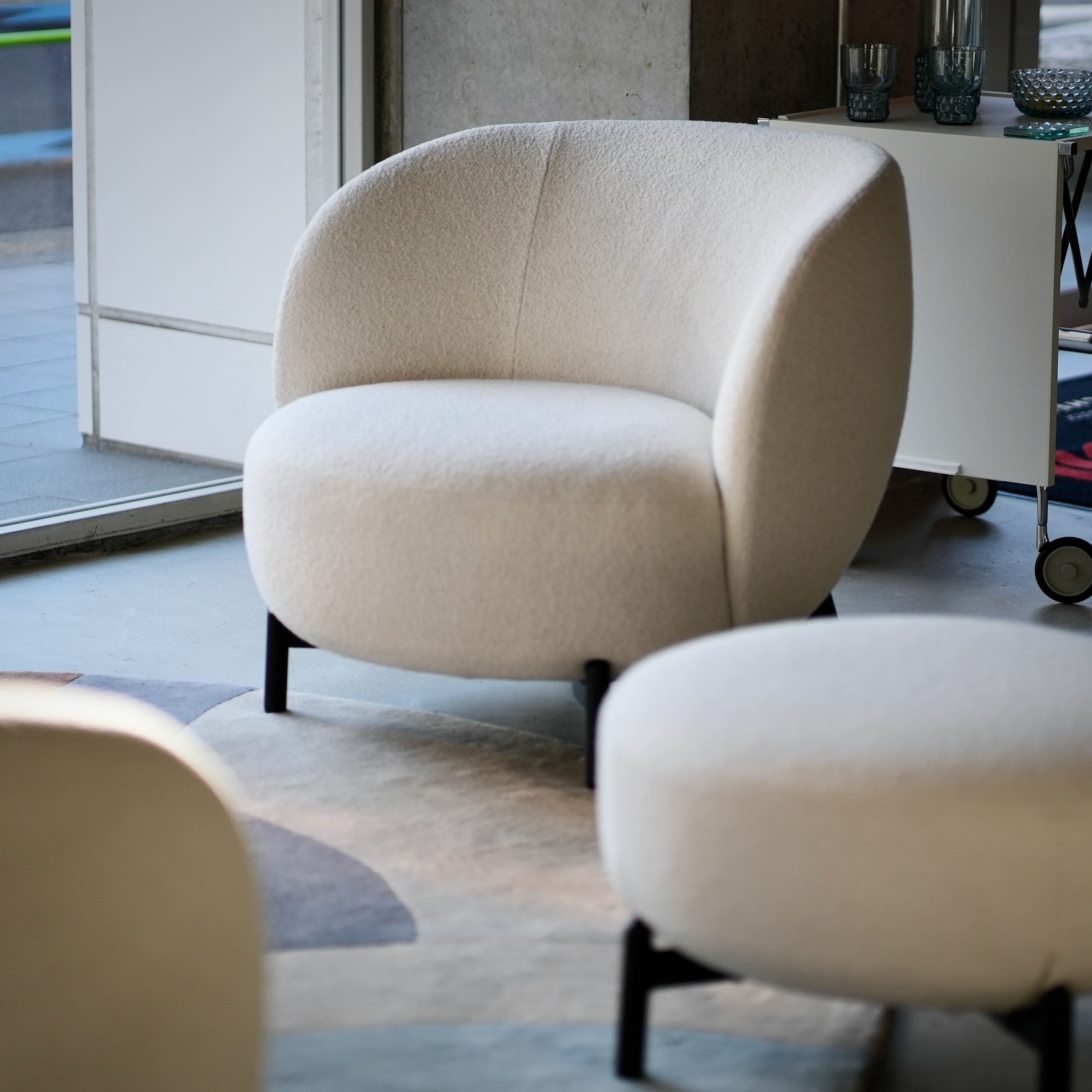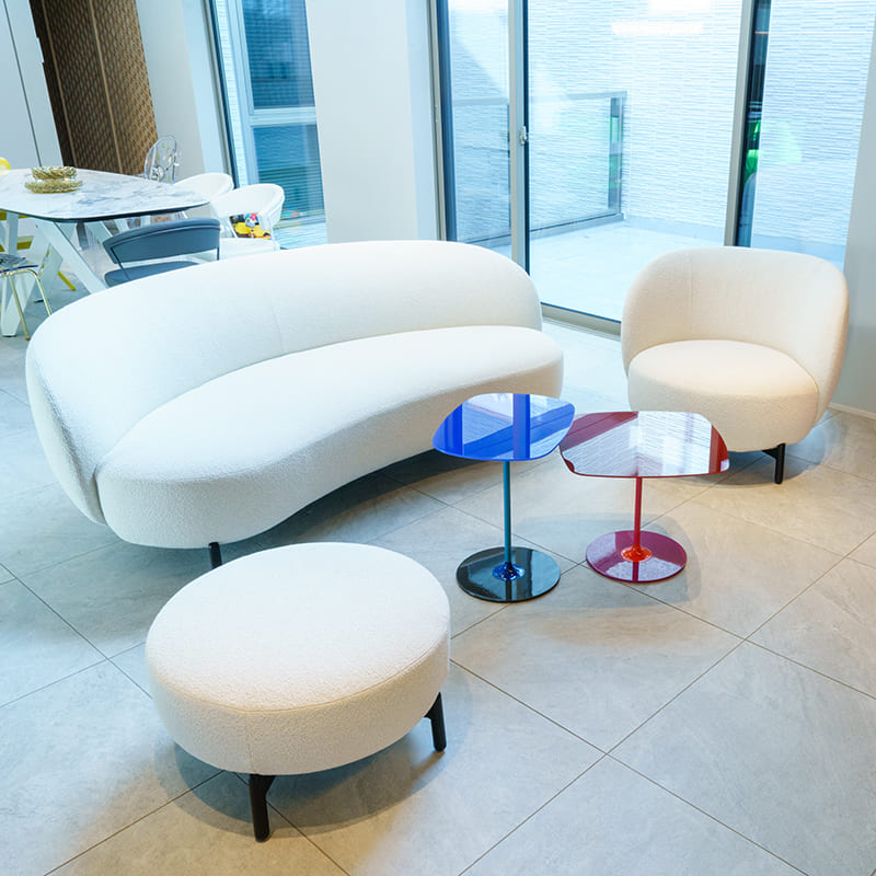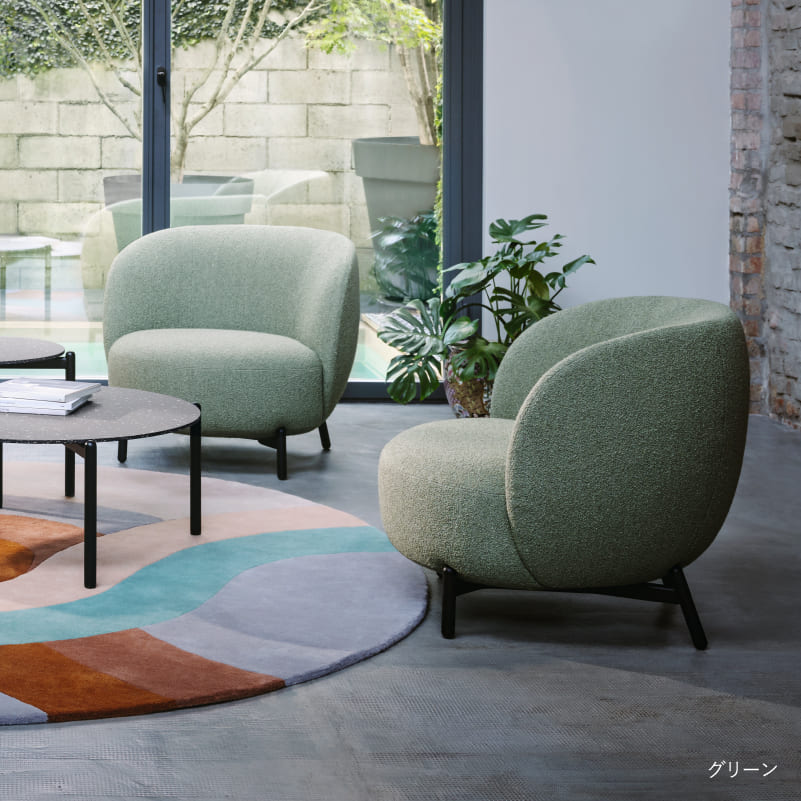 ルナムシリーズはソファだけでなく、共通したモチーフのテーブルやラグなどとトータルコーディネートが可能です。