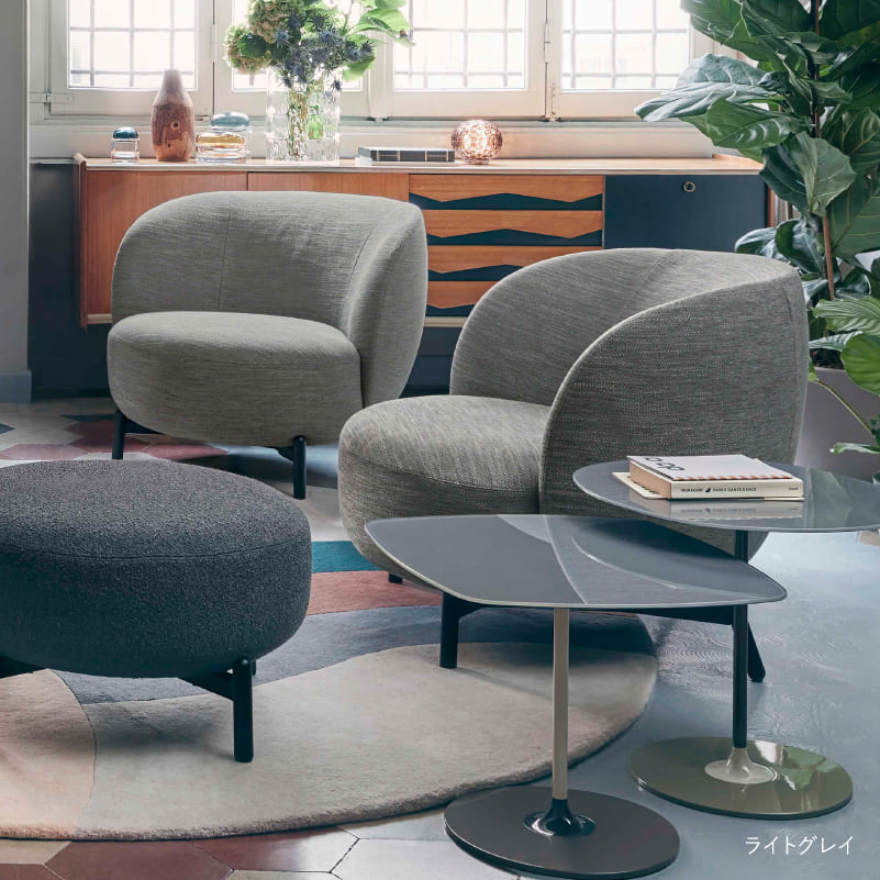 ルナムシリーズはソファだけでなく、共通したモチーフのテーブルやラグなどとトータルコーディネートが可能です。