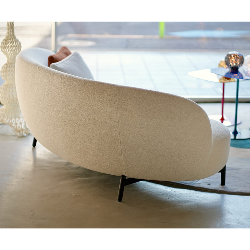 月面というワードと相まって、どの角度から見てもまるく緩やかに弧を描いたアウトラインが、柔らかな座り心地を予感させます。