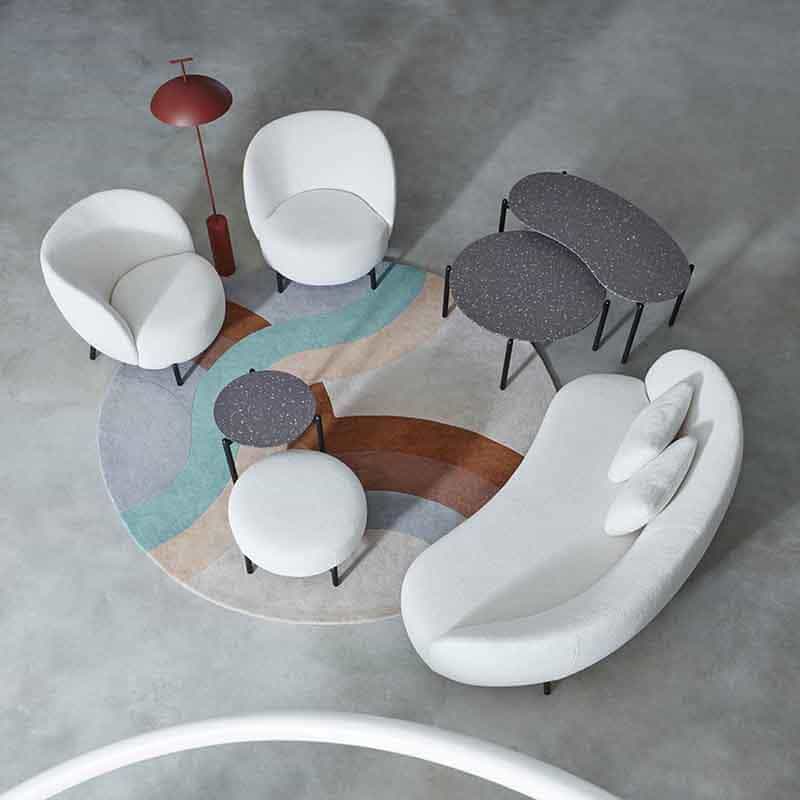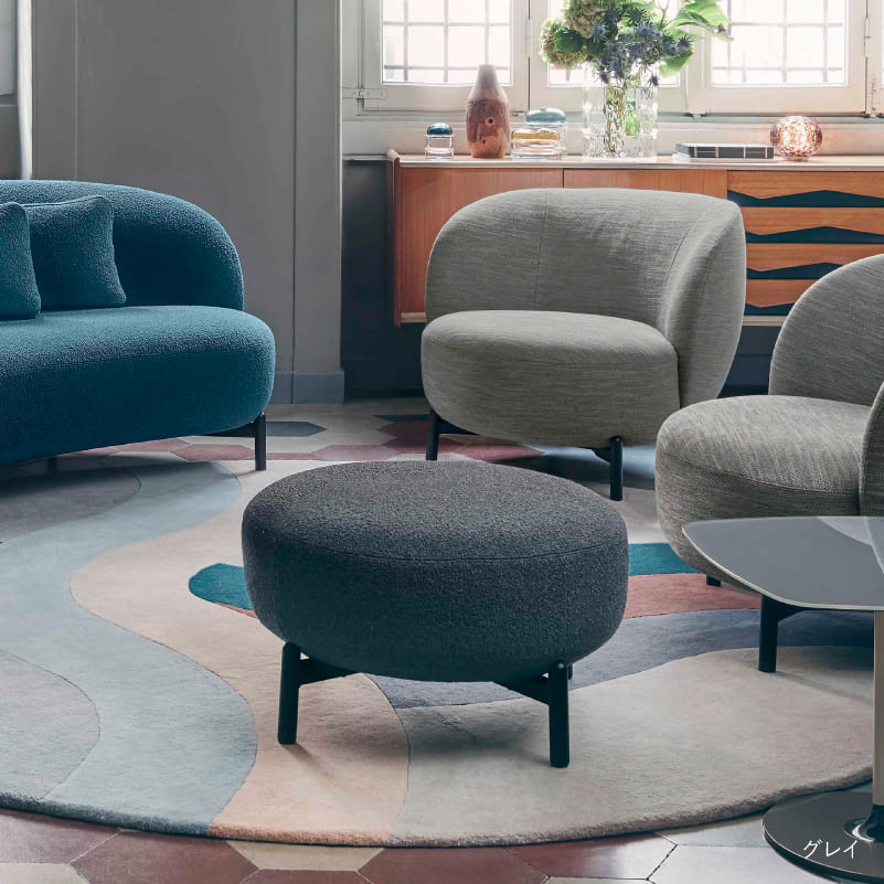 ルナムシリーズはソファだけでなく、共通したモチーフのテーブルやラグなどとトータルコーディネートが可能です。