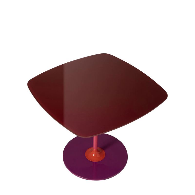 ファッション性の高いボルドー、クラシックなシーブルー、エレガントなロンドンスモークグレーなど、艷やかで光沢のあるガラステーブルとフレーム、ベースは同じ色調の中で対象的な組み合わせになっています。