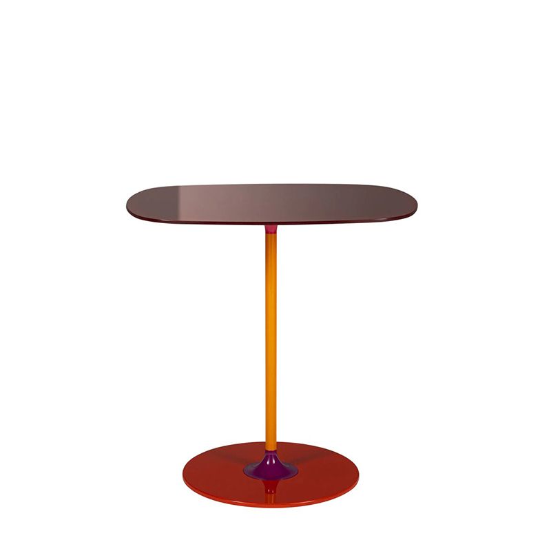 ファッション性の高いボルドー、クラシックなシーブルー、エレガントなロンドンスモークグレーなど、艷やかで光沢のあるガラステーブルとフレーム、ベースは同じ色調の中で対象的な組み合わせになっています。