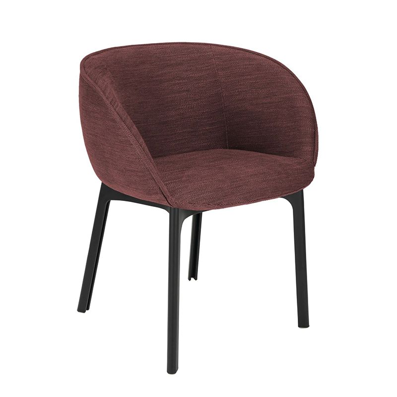 ファブリックは立体的で豊かな質感、シンプルなアウトラインで紡ぎ出すエレガントなフォルムでありながら、脚の素材に用いられたのはリサイクルプラスティック。