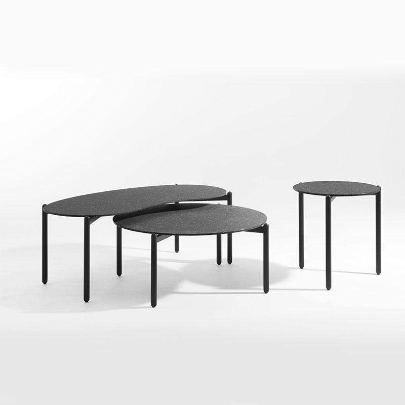 大きさやかたちの異なる3種類のテーブル、高さもそれぞれ異なります。それ故に組み合わせの幅は無数に広がり、ソファのそばで使うサイドテーブルの役割から、ネストさせてリビングのセンターに大きなローテーブルまで。その時々で適した使い方にアレンジ可能です。