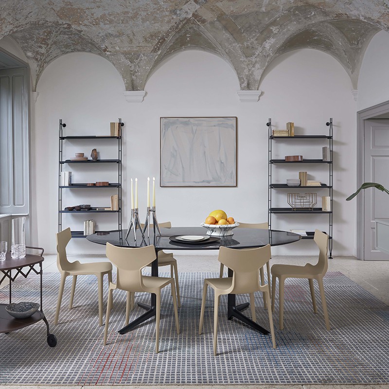 棚板に用いられているのは、Kartellの最新のプライウッド技術が用いられた木材です。通常のプライウッドに比べ、木材の使用量を最小限にし、強度や曲面の再現性は格段にアップしています。
