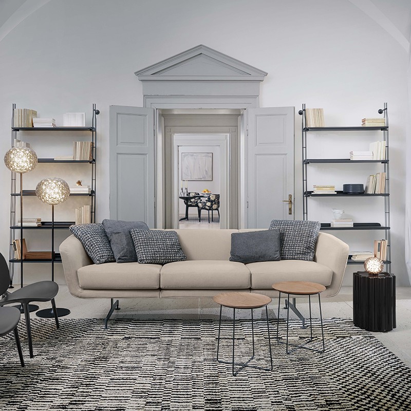 収納する本の量や、飾るオブジェの大きさに合わせて、棚板を移動させてカスタマイズすることが可能です。追加の棚板や支柱もラインナップされています。
