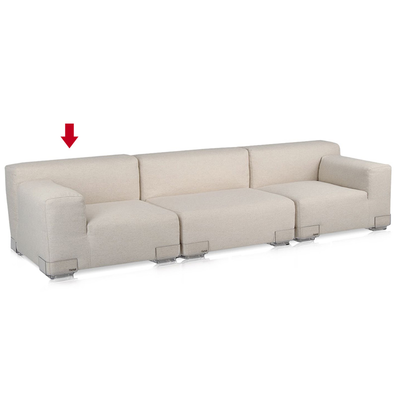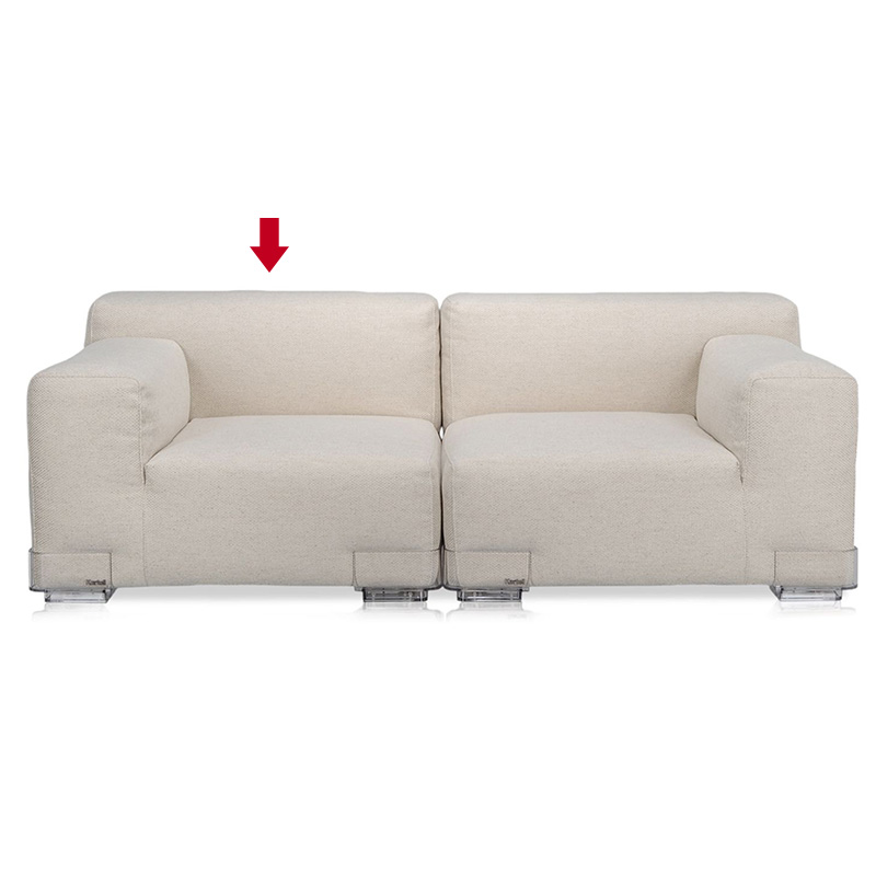 シートは2つの異なるサイズ、88と114センチ、および、アームがついた2つの異なる高さで構成されています。ソファには3つの異なるモデル、背もたれのあるタイプ、右アームのタイプ、左アームのタイプがあります。同じ生地のクッションを追加することで、座り心地を調整することができます。