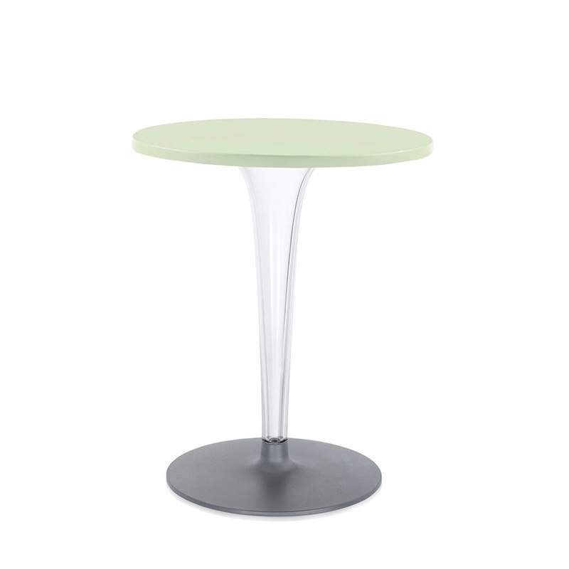 トップトップのダイニングテーブルは、グロッシーな面と透明な面を組み合わせたオリジナリティ溢れるテーブル。ミニマルでエレガントなラインを、プリーツのような筋の入った透明の脚が一層引き立てます。脚の断面は四角でメタル製の芯入りです。サイズと素材のバラエティがあり、様々な用途に対応します。
