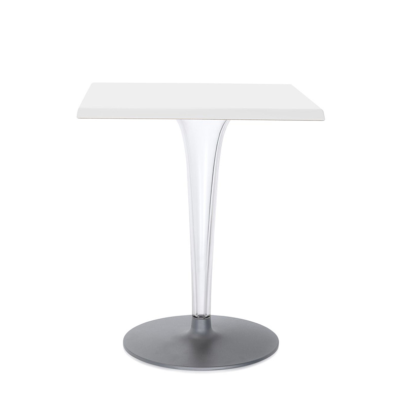 トップトップのダイニングテーブルは、グロッシーな面と透明な面を組み合わせたオリジナリティ溢れるテーブル。ミニマルでエレガントなラインを、プリーツのような筋の入った透明の脚が一層引き立てます。脚の断面は四角でメタル製の芯入りです。サイズと素材のバラエティがあり、様々な用途に対応します。