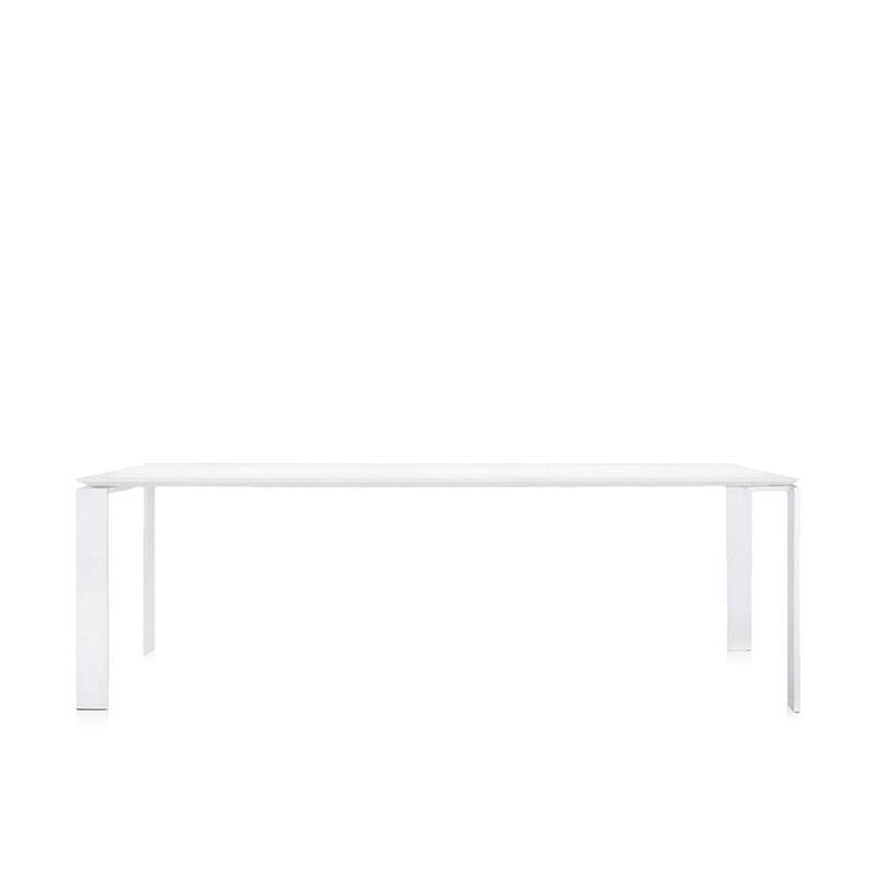 機能的で洗練されたシンプルなデザインです。薄い天板の下にチェストやパソコン用ファニチャーが入れられるよう工夫されています。Fourを複数配置してワークステーションをつくることもできます。天板は厚さ2.5cmの多層合板、脚はスチールの塗装仕上げです。