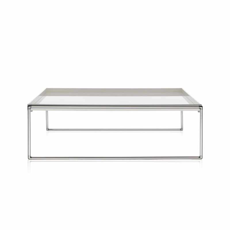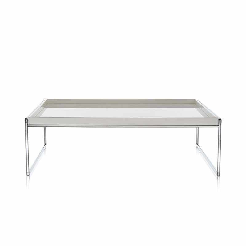 トレイの部分は光沢のあるアクリル樹脂製、脚部はクロームコーティングされた金属製です。