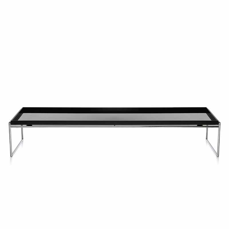トレイの部分は光沢のあるアクリル樹脂製、脚部はクロームコーティングされた金属製です。