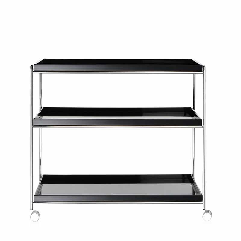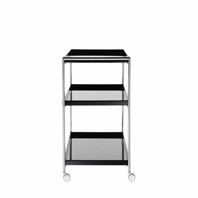 トレイの部分は光沢のあるアクリル樹脂製、脚部はクロームコーティングされた金属製です。